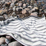 Fås i tre smukke designs – retrostriber, geometrisk mønster og fine striber – de er det perfekte tilskud til dit badeværelse, den ideelle ledsager ved poolen og et uundværligt tilbehør til en dag på stranden.