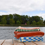 Vores stribet håndklæder er mere end bare håndklæder; de er et strejf af luksus i hverdagen. Fremstillet af 100% økologisk bomuld og med en solid vægt på 600 grm, giver de en blødhed, du vil elske. De dybe, rige farver repræsenterer vores dedikation til bæredygtigt design. De er det perfekte valg til badeværelset, stranden eller poolen, når kun det bedste er godt nok.